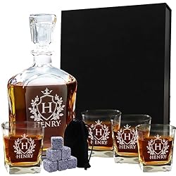 Nothing says class like a personalized decanter set. This one comes with a decanter and 4 glasses and all of them are customized with your name, initial, and date. It will love beautiful in any home, bar, man cave, or office.